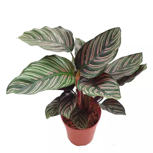 Calathea Sanderiana is a striking indoor plant known for its elongated, dark green leaves patterned with lighter stripes, adding elegance to any interior setting. Thriving in low to medium indirect light, it requires consistent moisture and high humidity to maintain its vibrant foliage. This species is ideal for plant enthusiasts seeking a visually captivating yet manageable houseplant that enhances indoor air quality while bringing a touch of tropical sophistication to your space.